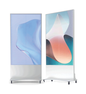 DG01-A5F0818 floor-to-ceiling transparent all-in-one machine, ultra-thin box, high flatness to make the picture more clear and bright. No need to install, movable.