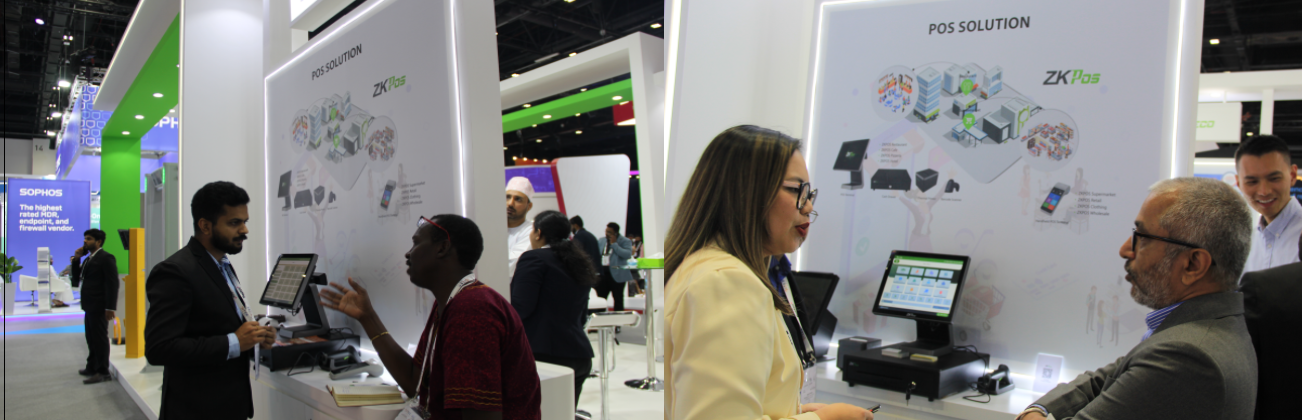 On our POS solution we displayed the newest Hand Held and portable POS ZKH300 and others are SLK20R, ZKBio750, ZKC0508, ZKbot, ZKP8012 Thermal Printer and ZKB203s Barcode Scanner.