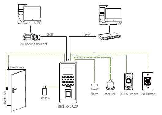 BioPro SA20 is a time attendance and access control terminal with advanced BioID technology which minimize the interference occured during fingerprint verification and infrared technology that enables the device to function automatically when fingerprints are detected, reducing unnecessary electrical usage thus saving energy