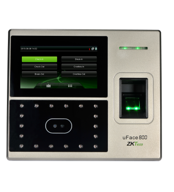uFace800 facial multi-biometric time & attendance and access control terminal supports up to 3,000 face templates, 4,000 fingerprint templates and 10,000 cards. With ZKTeco latest hardware platform and algorithm, it offers brand new UI and user-friendly operation interface to provide smooth user experience. With advanced face algorithm and multi-biometric verification technology, the terminal's security level of verification is significantly enhanced.