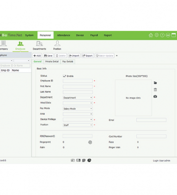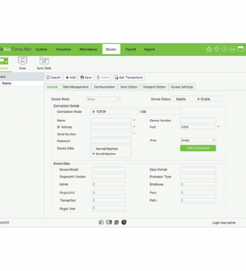 ZKBio Time.Net is a lite windows-based desktop time and attendance software for small and medium enterprises. It provides a stable communication for ZKTeco standalone devices through Ethernet / Wi-Fi / USB and connects all devices to download transactions, synchronize employee information, calculate attendance records, and generate more than 15 kinds of reports. And it is equipped with a Payroll module that provides a corresponding payroll calculation function.